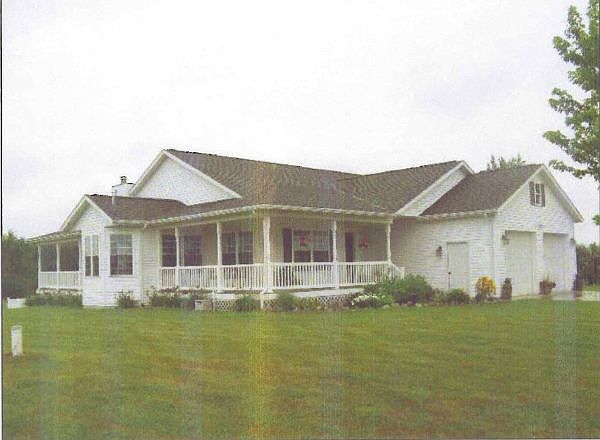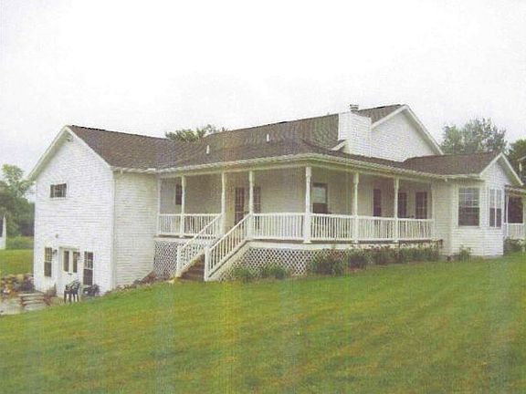 Custom built ranch home with 4 bedrooms and 3 full bathrooms with over 3,500 sq ft of finished living space. Home features a beautiful kitchen with maple cabinets, corian countertops, and distressed tile flooring. Large master suite with walk-in closet and double vanity. Living room has vaulted ceilings, wood burning fireplace, and French doors leading to the porch. Other features include full finished walk-out basement, wrap around porch, central air, central vac, and 2.5 car attached garage. A nice private country setting!