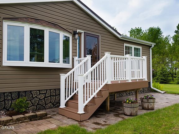 A meticulously kept home/yard situated on 4.25 acres in a rural area. Home has granite countertops and fully remodeled primary bath. Steel roof and vinyl siding as well as many other updates. New septic and drain field. Maintenance free decks E & W. Lots of landscaping and 7 rows of new trees to W. Located off a county road for quick, easy access to I-29. Call for a showing.