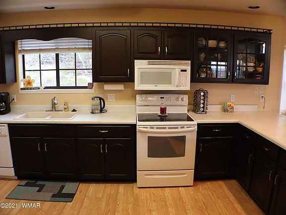 Cabin with views galore! This 1997 private home is tucked away in the pines, juniper and manzanita offers 2 bedrooms & 2 full baths with another potential room / office. 2 car built-in garage. Cozy floor plan with covered and uncovered decks / balconies to relax and enjoy the views for miles. Fenced in back yard and garden area. Enjoy what the mountain has to offer - only a morning's drive from Phx. Peace & Quiet. The Pellet stove heats the entire home very nicely. Spacious and open kitchen and living room. Updates made in 2006. Water softener & utility sink in garage, Metal roof, fresh paint and more.