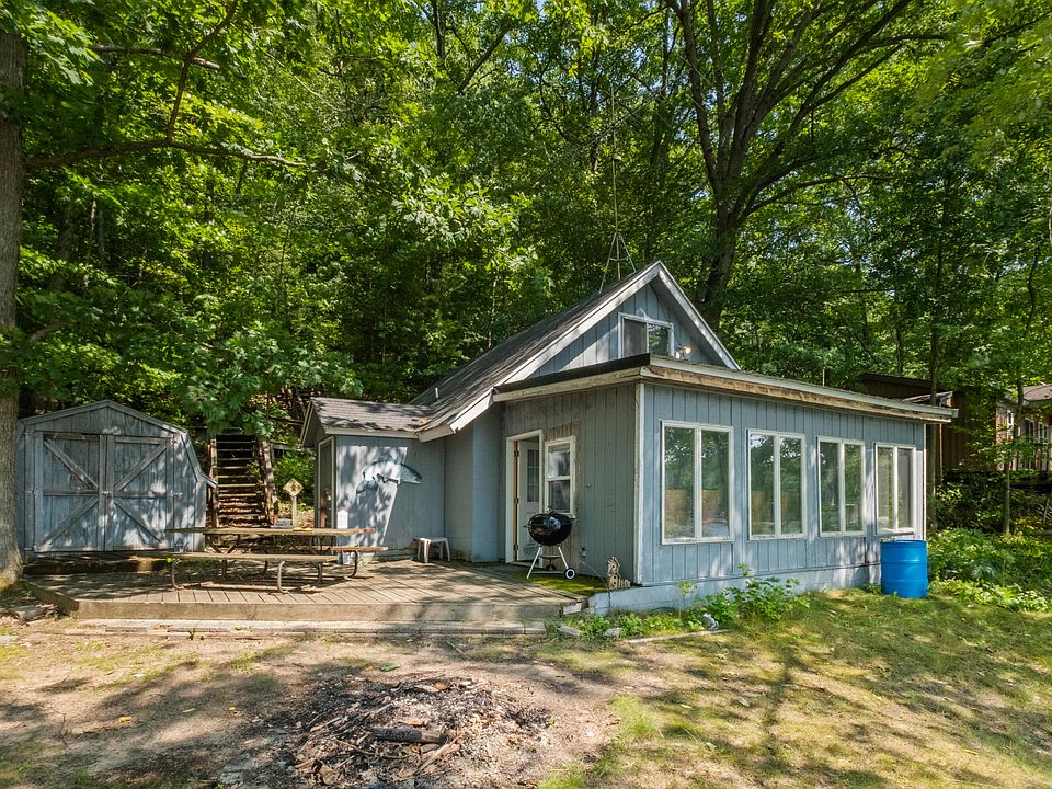 Great opportunity to own waterfront property on coveted Blue Lake. Some of the best water quality and clarity of any inland lake in West Michigan. . Blue Lake is a private 69 acre no wake lake, 10 hp max gas motor, and excellent fishing. The association includes 259 acres of common private HOA forest for members use. This land has great hunting, ORV riding, and hiking trails. Here is the association website: https://mibluelake.org/ The lake is regularly stocked and the fishing is amazing! This is a great opportunity to finish out a handyman special. A lot of the hard work has been done on this cottage, New floor joists and subfloor throughout. Just need to finish off mostly the cosmetic details. Sorry no STR. Come check it out today!