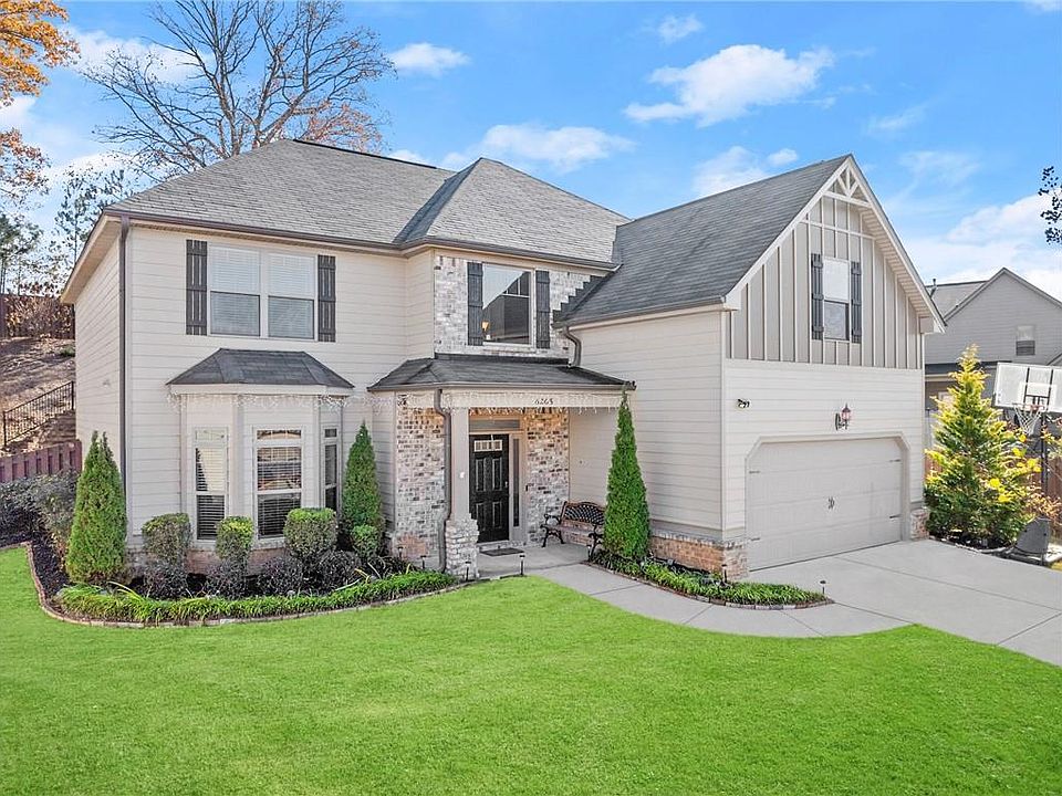 Highly sought after neighborhood within the top ranked Forsyth County Schools! BRAND NEW ROOF as of January 2025! This beautiful 5 bedroom home offers great curb appeal with a gabled board and batten peak, brick accents, covered front porch, and established landscaping. Two-story foyer with views of the upstairs landing and a decorative wrought-iron railing. Wainscoting, elevated trim work, coffered and tray ceilings, as well as LVP flooring. A BEDROOM ON THE MAIN level is perfect for visiting guests or a home office with a great-sized half bathroom just across the hall. The spacious kitchen provides ample space to prepare and serve your favorite meals as it's equipped with granite counter tops, stone back splash, pantry, island, and classic white cabinetry. Arched entryways lead to the family room and adjoining dining room, making for an easy flow from room to room. Connecting the family room to the kitchen is a bar area perfect for extra dining space and hosting loved ones, no matter the occasion. Making your way upstairs, you’ll find an OVERSIZED PRIMARY SUITE that features tall ceilings, a French door entry into the primary bath, multiple closets, soaking tub, split vanities, and a large walk-in shower. Three more additional bedrooms and a full bathroom with a full-sized counter to accommodate the whole family. Laundry day will be a breeze with the laundry room within closet proximity to the upstairs bedrooms. Bring your favorite outdoor furniture and create an outdoor retreat that fits your lifestyle. The fully fenced backyard, and no view of rear neighbors provides a more private feel. Amenities include a lake, large pool, clubhouse, swings, and a stone fire pit, perfect for gathering with neighbors for a cozy fire and friendly conversation. Conveniently located near major highways for an easy commute, as well as many shopping and dining options. Minutes from Lake Lanier and boat ramps for all the outdoor excursions you could ask for! Year around local activities and events for lasting entertainment with close proximity to the North Georgia mountains, wineries, pumpkin patches, breweries, and more. Schedule a visit today and start planning for an easy transition into this move-in ready home within this wonderful community!