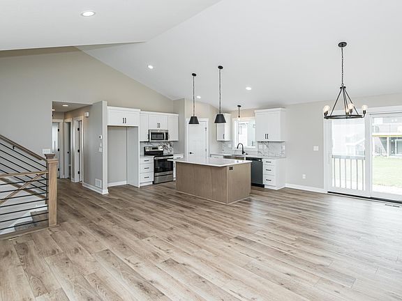 Very popular plan in the great location of Summit Pointe. Walking into the foyer there is a barn door that opens into a large mudroom on the left with walk-in closet and built-in cubbies. Large living room dining and kitchen with vaulted ceilings. The kitchen has an oversize island with a corner pantry and quartz countertops. Main bath with linen closet, a barn door that opens to a laundry room across the hall. And 2 nice size bedrooms at the end of the hallway. Then main living space will have LVP flooring throughout. Upstairs has a loft and double doors opening up to a very large master bedroom suite with a trayed ceiling, large walk-in closet. The master bath has stained ship lap behind the soaking tub, we have an 8' vanity with dual sinks and a 40 sq ft walk-in shower with dual shower heads. The lower level is completed with a bath, 2 more bedrooms and a fireplace in a large family room. Garage is insulated, with floor drain and garage heater.