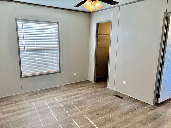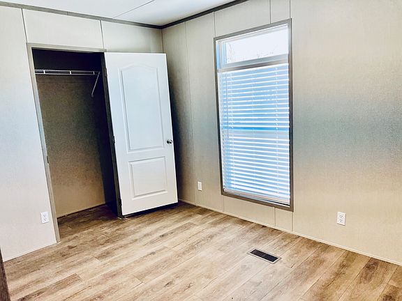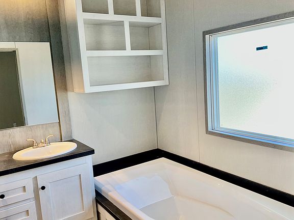 Beautiful Open Floor Plan! Vinyl flooring throughout home. Kitchen offers a Stainless Farmhouse Sink and a Large Island, the island is perfect for gathering around. Stainless Appliances. Buffet Cabinets provide extra storage. Living Room has a built in Entertainment Wall with Cabinets. Master Bedroom is at the far end of the home, includes a Walk-In Closet. Glamour Master Bathroom features a Large Soak Tub, Double Sink Vanity and Walk-In Shower. 2nd Bedroom is at the front of the home, next to the Full Guest Bathroom. Utility Room offers washer & dryer hook ups, Sliding Glass Door with Entrance Deck.