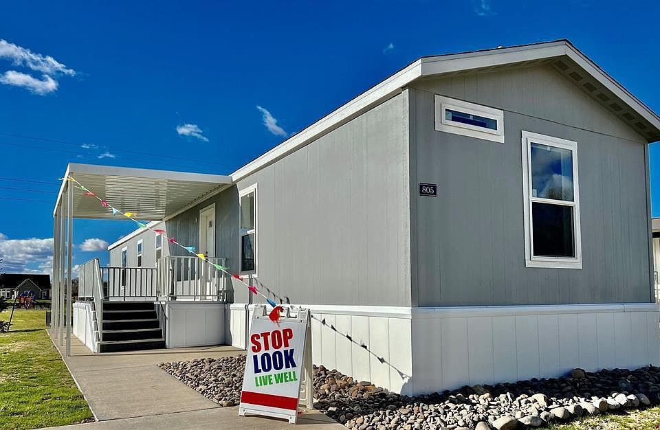 Beautiful New 3 bedroom, 2 bath manufactured home with 1155sqft in Hidden Lake Community located right behind the Dog Park. This home features the open floorplan with hidden laundry and a pantry. Enjoy the benefits of having your own comfortable home in a community that offers a wide range of amenities that include dog park, a playground, pickleball and basketball court, as well as a private fully stocked lake for some catch and release fun. Also, the Seller is offering Owner Financing for qualified buyers