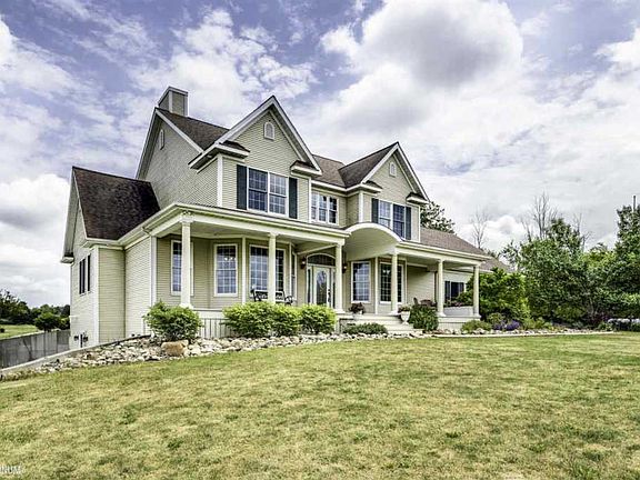 This home is well situated on over 10 rolling acres bordered by treed privacy. This 6 bed 3.5 bath home comes equipped with a spacious 3 car garage for all your families needs. You're guaranteed to feel at home the moment you walk thru the front door! Large private first floor master bedroom with ensuite full bath, great room style living room overlooked by the open concept eat in kitchen with separate private formal dining room, huge coat/mud room with a half bath lav and first floor laundry room. Upstairs there are 4 spacious bedrooms (one bedroom doubles as bonus room) with a terrace balcony large gathering space and a full bath. Finished walkout basement the tale continues with a large family room, separate area plumbed for potential wet-bar/kitchen, private large bedroom, a third full bath and a second laundry room with a ton of storage. From basement is private stairs to garage. NEW GAS FURNACE and ALL APPLIANCES REMAIN. Come see this before it's a missed opportunity!
