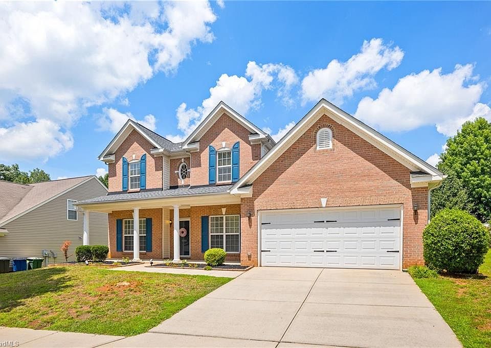 Gorgeous 4-bedroom, 2.5-bathroom home in beautiful Glen Village subdivision. This property offers fresh paint, new roof (2022), hardwood floors, built-in sitting room with bookshelves, wainscoting, and accent wall. Open floor plan with a double height living room ceiling (23-25 feet high) offers a cozy fireplace and a beautiful staircase. First level master suite and laundry room. Enjoy this Glen Village Community with two playgrounds and occasional free events, all included in HOA dues. Close commute to Winston Salem, High Point, and Greensboro. Schedule a showing today!