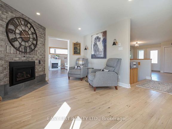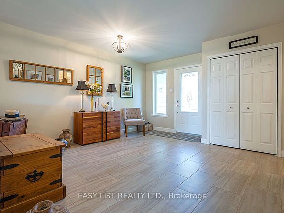 For more information, please click Brochure button. If you are looking for a secure and simplified way of living, you must visit Creg Quay Estates. This predominantly remodeled 1+3 bedroom bungalow features an extensive foyer, warm hardwood floors throughout, modern open kitchen with walk-in pantry, open concept living and dining areas, a 4 season sunroom and a loft! Renovated features include heated tile floors in the foyer, kitchen, ensuite and sunroom. Warm tones throughout the home deliver a cozy, move in ready appeal. The open concept main level includes ample windows with panoramic views of the water front. Southern exposure fills the main living areas with natural light. The finished basement level features 3 bedrooms with a 4 piece bathroom/laundry room, and a workshop. The two tiered spacious outdoor deck facing water is encompassed by perennial gardens and fruit trees (apple in front and pear in back) provide a private and beautiful site to watch wildlife and sunsets. Creg Quay Estates is an adult-only private community of homes and common lands along the shore of Lake St. Francis (St. Lawrence Seaway) in Ontario. Residents enjoy the peaceful, woodland setting to include a community center as well as outdoor amenities such as a tennis/pickleball courts, heated salt-water pool, extensive gardens, outdoor games area, and docks for boaters of all kinds. The community is managed by the non-profit Quay Estates Residents' Association. Maintenance fees of $315 per month (subject to increase) also cover lawn care of common areas and snow removal of streets and driveways during the winter months.