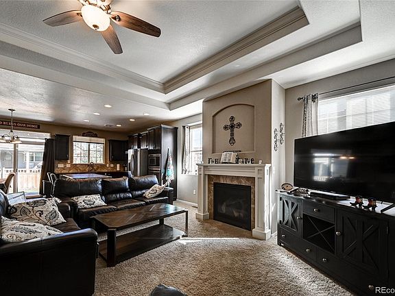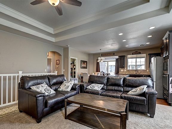 This 4 bedroom, 4 bathroom ranch style home boasts high ceilings and an open concept living room. The large kitchen features granite countertops, stainless steel appliances, a gas cook top, and island seating. The main floor offers two bedrooms, two full bathrooms and a powder room. The spacious master en-suite features two walk-in closets, a 5 piece master bath with soaking tub and an additional private office space/flex room. The finished basement is perfect for kids, guests or multi generational living, offering a stunning kitchenette, private family room, two bedrooms, a beautifully remodeled bathroom and a second spacious laundry room. The basement features ample storage, newer tankless hot water heater and furnace. Fantastic location with community park and trails, easy access to DIA, Gaylord Rocky Resort, I 70 and more! Come take a look for yourself.