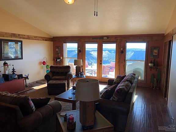 Beautiful home on rim lot at Crooked River Ranch. This house has many upgrades including: Hardwood floor, Quartz slap counters, knotty alder trim, Composite deck, paver patio, custom handrailing, stone feature wall in living room, study/Bedroom. Wood stove for the chilly winters, Central A/C for the hot summers. Over sized garage has shop area. Located on a paved street with easy access to town and CRR golf.