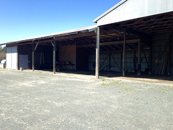 34.2 Acres with potential use as a chicken farm. Property has a double wide that could be moved to front Left corner of property so that up to 6 chicken houses can be built together. The property has 3 perks one of which is at potential site of the mobile home. Double wide his 1588 sqft and has 3 bedrooms and 2 baths. This property also includes a large pole building with shop space.