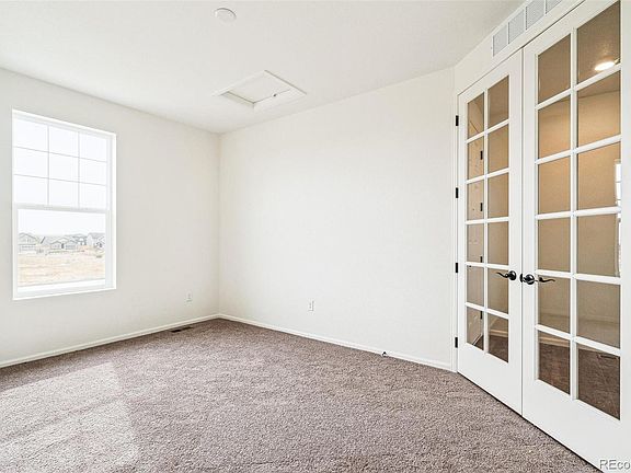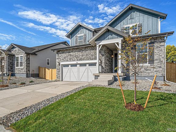 This lovely two story home backing to beautiful mature trees and farm land has an open floor plan with 9ft ceilings , 8ft doors and a spacious great room with additional flex space. The roomy kitchen with an impressive island for extra seating, features 42-in. upgraded two tone, white and navy cabinets, white quartz counter tops, GE stainless steel appliances including a electric range, microwave and dishwasher. Work from home in the private den with French doors. The spacious primary suite boasts a large walk-in closet and the bathroom showcases a dual vanity sink and large walk-in shower with bench seating. The main living space, bathrooms, kitchen and laundry room have upgraded low-maintenance plank flooring. The extended 2 car garage and full unfinished basement will give ample space for storage. The 9ft ceilings with 8 ft doors give a vaulted feeling to you main floor living spaces. Relax outdoors and share some family time in your private backyard.The Listing Team