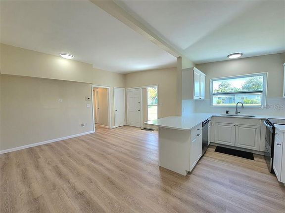 Come see this renovated home short distance to Tyrone shops and 10 mins drive from the nearby beach of your choice. Upon entering you will notice the luxury vinyl flooring, bright and airy living spaces with new paint throughout. The kitchen includes Quartz countertops, a bar-top space for eating, a window overlooking the front yard, and all stainless-steel appliances. The 1st and 2nd bedrooms are both of generous size with easy access to the main bathroom, which has been updated with a new tub, toilet, tile and vanity. 3rd bedroom is flexible can be used as room providing access to the interior laundry. Additional features include new roof (2022), newer AC and large driveway that can easily park 3 to 4 vehicles. This home is under 1 mile to Tyrone Mall, 4.5 Miles to Treasure Island beach, 1 Mile to Pinellas Trail Access, and under 1 mile to Publix. Come see this home today for your best Florida living.