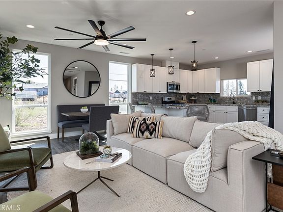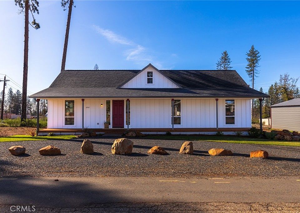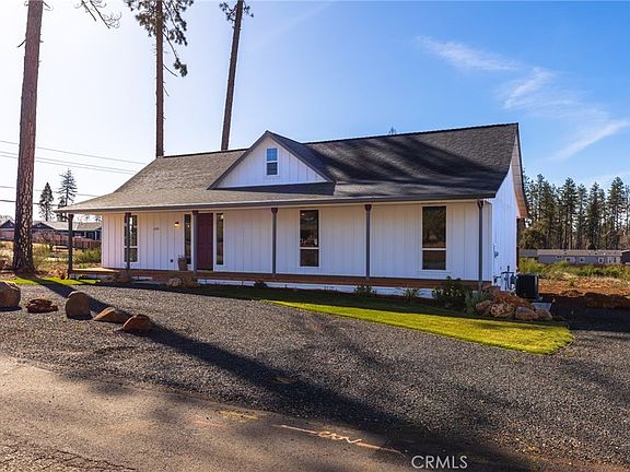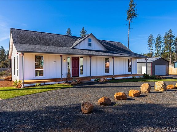 Welcome Home! This stunning new construction, 3-bedroom 2-bath 1612 sq ft home, is perfectly situated on a generous .44-acre corner lot, offering plenty of space and privacy. As soon as you step inside, you'll be greeted by the large ceiling-to-floor windows that allow natural light to flood this well-appointed open floorplan, perfect for entertaining or relaxing with family and friends. The kitchen details are both functional and stylish, with beautiful granite countertops. You’ll also appreciate the convenient eat-at counter island, perfect for casual dining or morning coffee. Soft close drawers, plenty of cabinet space, and a walk-in pantry complete the kitchen. The primary bedroom with en-suite bathroom and walk-in closet provides a private oasis. The detached garage/shop provides ample space for parking or storage, and plenty of room for your hobbies and projects. This home also features 704 sq ft of covered redwood decking, perfect for outdoor entertaining. Front yard landscaping with sprinklers. Don't miss your chance to make this beautiful property your own! Located just a short drive to Lime Saddle Marina, providing easy access to all the recreational opportunities and scenic beauty that Lake Oroville has to offer. Imagine spending your weekends boating, fishing, and enjoying the great outdoors just minutes from your doorstep. Don't wait - come see this amazing property today!