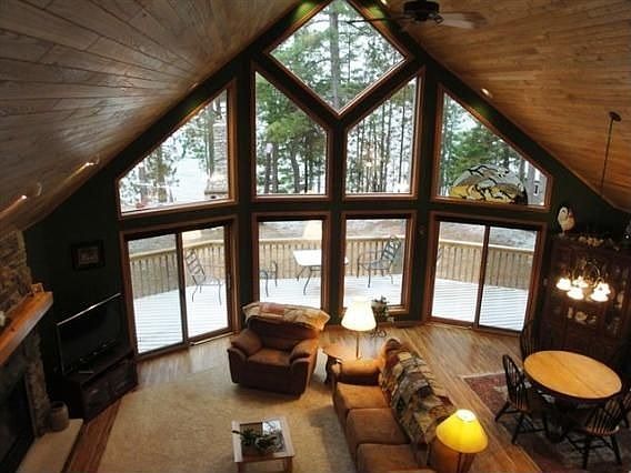 This home features 329 feet of sand frontage on pristine Two Sisters Lake. Open concept main floor features tongue and groove ceiling, gas FP, floor to cathedral ceiling windows. Kitchen has Corian counters and hickory cabinets. Master suite offers private bath with whirlpool and separate shower, patio doors leading to the lake facing 3 season room. Walk out lower level is mostly finished with office, exercise room, workshop and rec room. 3.5 car garage extra deep.