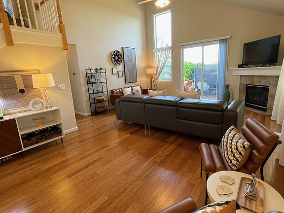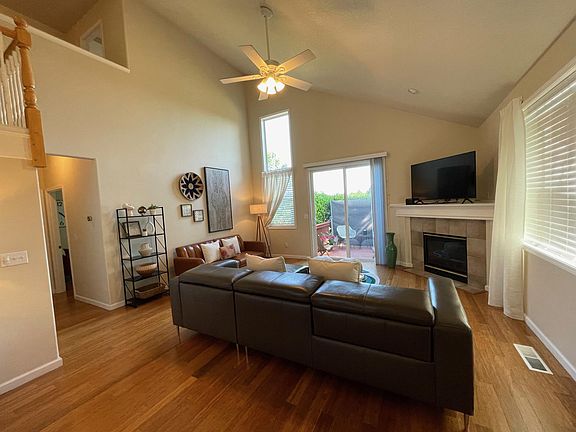 Beautiful home w/ bright open floor plan in popular Grand Oaks. Main floor with great room boasts vaulted ceilings, gas fireplace, hardwood flooring, and kitchen with tile counters, KitchenAid stainless appliances, gas range, pantry, and bar. Half bathroom on main floor. Master bedroom with large walk-in closet with storage, double sink vanity, and separate shower/tub area with toilet. Upstairs features full bath with shower/tub and a skylight, and tiled counters, linen closet, and two bedrooms, one with a walk-in closet and the other overlooking the green space in Grand Oaks park. Back deck has views of the coast range and the green space in Grand Oaks park. The house is adjacent to the playground area. 2 car garage. AC. High capacity washer and dryer included. Access to pool/hot tub/athletic center. 1 yr agreement. Utilities not included (except for disposal)