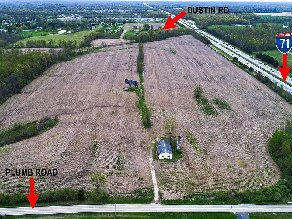 PRIME DEVELOPMENT LOCATION...NEARLY 88 WITH EXTENSIVE ''FRONTAGE/VISIBILITY'' ON I-71. ~1,165 FOOT ROAD FRONTAGE ON PLUMB ROAD & ~ 130 FOOT ROAD FRONTAGE ON DUSTIN ROAD. CURRENTLY ZONED ''PIND-PLANNED INSTITUTIONAL DISTRICT'' BUT IS BEING FARMED & WOULD MAKE THE PERFECT HOUSING DEVELOPMENT OR MIXED USE DEVELOPMENT (WITH PROPER ZONING & UTILITIES) OR BUSINESS, CHURCH, CHILD CARE, ETC. CLOSE TO ALUM CREEK, 36/37, TANGER MALL & JUST NORTH OF POLARIS. CREEK, WOODS, AND PASTURE. WATER & ELECTRIC AVAILABLE. THIS AREA IS DEVELOPING FAST!