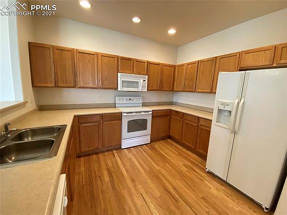 Come see this extraordinary end unit townhome. As you enter, you are greeted by a spacious living and dining room area that boasts large windows and hardwood flooring. The kitchen has plenty of cabinet and counter space and also has hardwood flooring along with access to the oversized 2-car garage. Down the hall you will find a half bath and the laundry facilities with the washer and dryer included in the sale. Upstairs you will find a 2 master suite layout with an expansive loft area. Both rooms have attached bathrooms, double vanities, walk-in closets, and carpet throughout. The loft area has coaxial and ethernet ports and can be used for an office area or second level living room. This home also features central air conditioning and is located near shopping and fitness centers along with The Powers Corridor and District-49 schools. Don't miss out!