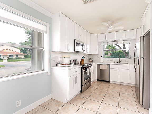 Rarely available corner-unit villa in Boca Walk, centrally located in the heart of Boca Raton. This home features a fully renovated kitchen with modern finishes, along with a new washer and dryer for added convenience. Enjoy peace of mind with accordion hurricane shutters throughout.Located just minutes from the prestigious Town Center Mall, luxury shopping, five-star dining, and beautiful nature preserves and parks, including Sugar Sand Park and Patch Reef Park. Situated near top-rated schools and only a few miles from the beach, Boca Walk offers a unique opportunity to live affordably in Boca Raton without compromise.Residents enjoy community amenities such as a pool and hot tub, all within a well-maintained and desirable neighborhood.