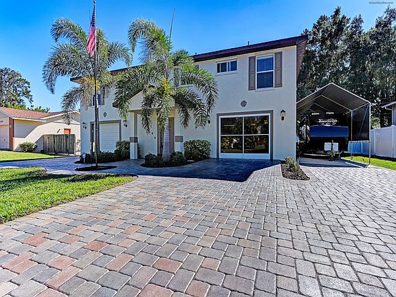 Custom Built 2005 home in sought-after Palmetto Point, a friendly boating community with its own Community Boat Ramp. This well-cared for home has LOTS of bonus space, so altogether you have over 3,800 sq ft to spread out! On the first floor you'll find a 4 car garage divided into two areas. Split unit A/C units make this a great workshop or entertainment area during all seasons. Upstairs, an Open Floor Plan features a breakfast bar off the kitchen, solid wood cabinets, and tile flooring throughout the main living area. French doors open from the living room and from the master bedroom onto the 35' enclosed balcony. The master bedroom has attractive solid wood flooring, and master bath features dual sinks and an extra large tiled walk-in shower. There are 2.5 baths plus a laundry room upstairs. Your back yard is fenced, and on either side of the house there is parking for RVs or boats. The paved RV pad has 30amp electric and water. The front features a paver brick circular drive with extra parking. This home has block construction on not just the first, but through the second story. NO Deed Restrictions and Optional HOA of just $100 per year. Must see to appreciate!