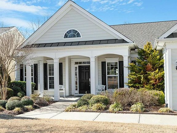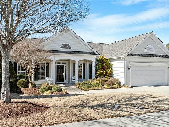 Welcome home to the inviting front porch of the Bluffton Cottage, located in Cary's premier 55+ active adult community with world class amenities. The open transitional floor plan allows for easy flow for entertaining while still exuding a sense of warmth and the comforts of a well-designed home. Hardwoods grace the foyer, dining room, hallway, kitchen and breakfast nook. The kitchen, the heart of the home, has an abundance of cabinetry, gas cooktop, wall oven, built-in microwave, Zodiac counters. The living room features a gas log fireplace flanked by two built-ins. Step out of the sliding doors from the breakfast nook, and enjoy the partially covered extended brick paver patio. Primary bedroom with tray ceiling, luxury bath and large walk-in closet. Your guests will enjoy a spacious guest room with private bath. The 3rd bedroom also works well as an office/study. Updates include newer roof, a.c. and water heater. At just under 2100 sq ft, it is the perfect size with easy one-level living.