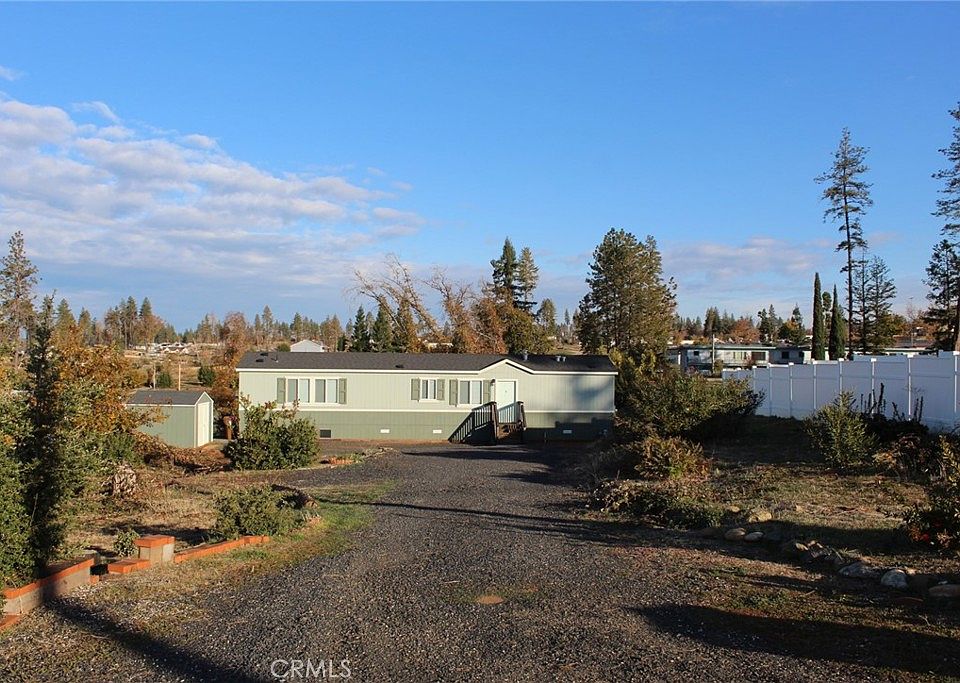 Is this it? This home is located just off the Skyway, walking distance to the BRC building, Starbucks, Cozy dinner, park, shopping and more. If you don't drive, or don't want to drive, this would be an absolutely great location for you. Great down town area! This two bedroom two bath home is laid out with one bedroom and bath on each side of the home, with the living room, kitchen, dining area and laundry room between. Sellers loved the layout of the home. There is a nice storage shed, electrically wired to plug in a generator, many plants and a few trees to start your landscaping. All this sets on .34 of an acre. Distant sunsets to view and not even 30 seconds to Skyway for super easy commute to Chico. Come take a look soon. Would also be a fantastic investment property.