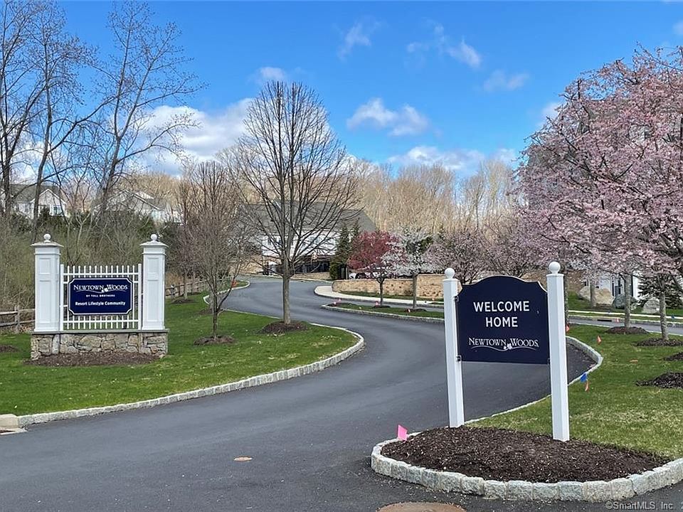 Ready for immediate occupancy; just move in, unpack, relax and start enjoying the Newtown Woods lifestyle in this pristine two bedroom Concord Grand model. From the moment you enter the lobby of this luxury elevator building with private garage, youll be surrounded by the quality of a Toll Brother's property. The home is filled with natural light thanks to a corner location that overlooks a serene, wooded setting with brook and pond views. Wide-plank hardwood floors greet you at the foyer and continue throughout the living room, dining room & kitchen. The open floor plan with over $35k in upgrades including crown molding & recessed lighting is perfect for entertaining guests or day-to-day living. The chefs kitchen outfitted with stainless steel appliances including a French-Door refrigerator and gas range features granite countertops & tile backsplash. Sliders lead to your private deck off the living room. The crown molding and recessed lighting carries through to the spacious primary bedroom with sitting area which adjoins a luxury bath with oversized walk-in shower, granite vanity and double sinks. A 2nd bedroom and adjacent full bath welcomes guests or can serve as a convenient home office. Forget about exterior maintenance and instead enjoy the clubhouse with its exercise room, sauna, billiard room, gathering areas and pool for the warmer months along with bocce and grilling areas. All this in a location convenient to shopping, restaurants and Metro North trains to NYC. Water charge of $51 per month