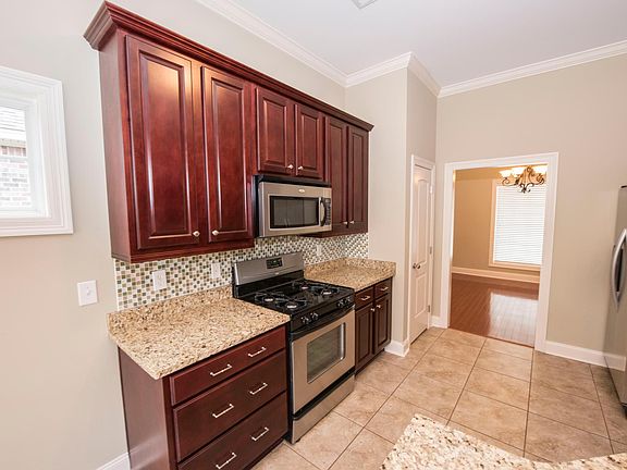 Nice 4 bedroom, 2 bath brick house in desirable Grove Hill Subdivision! Covered front porch, dining room with hardwood flooring, kitchen with stainless steel appliances, granite countertops, beautiful cabinetry, tile flooring, and adjacent breakfast area that leads out to the covered back porch. Great room with carpet, ceiling fan, and plenty of natural lighting. Spacious master bedroom with tray ceiling, ceiling fan, carpet, en suite master bath with double vanities, jetted tub, and tiled step-in shower. Bedrooms 2-4 all have carpet and ceiling fans. The tiled laundry room has washer/dryer connections, plenty of shelving, and storage cabinet. Nice covered back porch and stone paver patio in rear. Backyard is privacy fenced. Double garage. Zoned for Auburn Early Education Center (K-2) and Ogletree (3-5) Elementary School. This house rents for $2,000.00/month. Strictly no pets allowed.