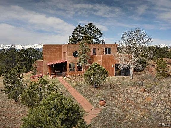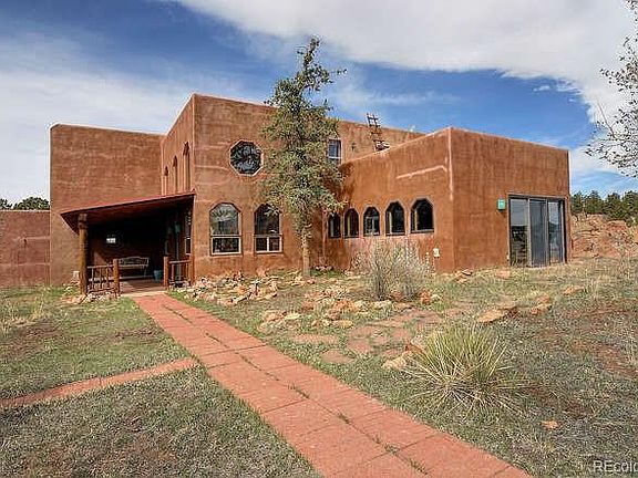 Casa Del Barranco (House on a Cliff) is the quintessential description of this Santa Fe-style home. Located on 10+ private acres, it sits on a small bluff overlooking a scenic, rocky ravine w/ seasonal Antelope Creek meandering thru the walls of the ravine. Home is situated to take advantage of these views, as well as majestic mountain views to the west. Entry area has a see-thru fireplace w/ the living room on the other side. Spacious room off the entry has been used as an art studio/sitting room w/ a bar/sink, 1/2 bath, library nook & a spiral staircase leading to a small loft area. Comfortable living room has beamed ceilings, see-thru fireplace w/ tiled hearth, sliding doors to a flagstone patio & a desk area. Arched doorway leads to kitchen w/ lots of character, tile countertops w/ built-in cutting boards, custom cabinets, windows & a brick arched inset oven/range. Master suite has a bath w/ tiled shower, soaker tub, wood-burning fireplace, a sitting area & door to exterior deck.
