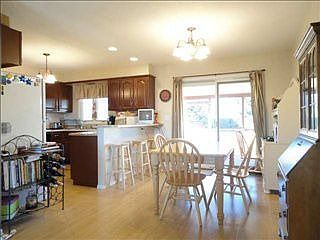 Well maintained 3 bedroom, 3 bath west side home close to schools K-12. Spacious foyer, open kitchen/dining area with sliding glass doors leading out to covered deck and large fenced back yard. Living room with woodburning fireplace and built in shelving, breakfast bar in kitchen and master suite with master bath. Lower level features a family room with wood burning fireplace, huge bedroom, laundry/storage room with a 14x12 workshop and built in shelves and cabinets.