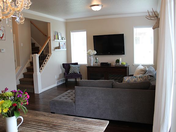 Beautiful townhome in gated community in great location. Upgraded finishes include: granite countertops throughout, stainless steel appliances, finished basement, laminate hardwood flooring and two-tone paint. Room to store your stuff with a two car garage, walk-in closets, two spacious storage rooms in basement and plenty of cabinet space. Access to pool, hot tub, fitness center, playground and club house. Well maintained open green spaces throughout community. Five minutes from: Costco, Target, Walmart, Home Depot, Vasa Fitness, three movie theaters, grocery stores, I-15 and many restaurants. Only ten minutes from Thanksgiving Point.