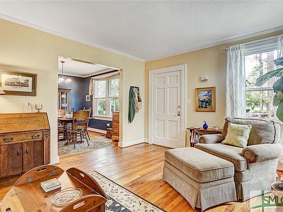 Adorable bungalow is filled with charm and personality, has detached bonus room plus garage, and is only 1 1/2 blocks from popular and fun Hull Park! Original features combined with modern touches create an inviting light and bright atmosphere. You will love having a cup of morning coffee on the darling screened porch, and also love entertaining your family and friends in the fabulous outdoor space with two patios and small fire pit. Split bedroom plan offers privacy. 3rd bedroom is currently being used as a sitting room downstairs and has door to exciting backyard and garden area. Interesting and rare detached "bonus" room (approx 300 sf) has a fireplace and paneled walls and could be used as a home office, gym, man cave with pool table, art studio, play area, etc. Close to Truman Parkway, Hull Park, Habersham Shopping Village, Daffin Park/Grayson Stadium, shops, restaurants, and more. Just 10 minutes to Historic Savannah and quick ride to Tybee Beach. This one is super cute!