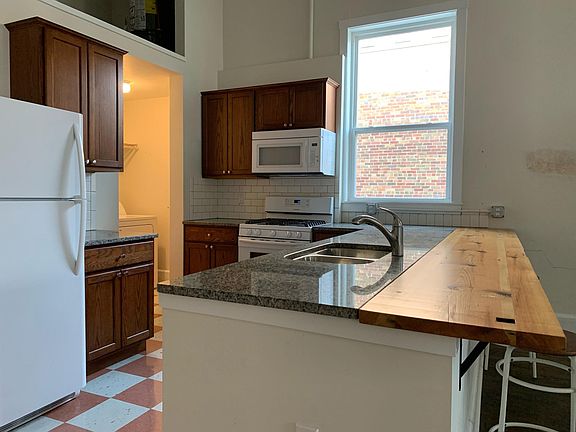 Completely remodeled, large 1 bedroom, 1 bathroom, top floor apartment located in the heart of Downtown Springfield. Vintage, loft style, remodeled apartment with all the important mechanical and cosmetic details completely updated! Plus history was preserved by sealing in writing and drawings on the walls from 1892! UPDATES: -Granite countertops with a cool, reclaimed wood bar. -Oak soft close cabinets -1940's inspired tile -completely updated kitchen (updated gas range, microwave, refrigerator with ice maker, and dishwasher) with subway tile backsplash -completely updated bathroom -washer and dryer in unit -new hvac, including central a/c (with cool, exposed ductwork!) -new water heater (apartment has it's own water heater, furnace, and air conditioner) -swanky, gold carpeted bedroom to compliment the 1940's/midcentury feel LOCATION: -next door to Recycled Records -above Piper and Arrows Boutique with 3 other apartments in the building -a few doors down from the Pharmacy Art Gallery -around the corner from Celtic Mist Pub -down the street from the fun and shopping of the rest of downtown and the farmers market! -no parking provided; there is a nearby parking garage with monthly pricing for parking as well as free street parking after 5pm on weekdays and anytime on weekends. Contact us to schedule a viewing. First month's rent and security deposit due at lease's signing. Housing vouchers not currently being accepted. $40 application fee per adult applicant applies. Tenant is responsible for electric and gas services. No pets, no exception. owner pays water, sewer, and trash services. Tenant pays electric and gas services. Average monthly gas bill: $42; average monthly electric bill: $36.