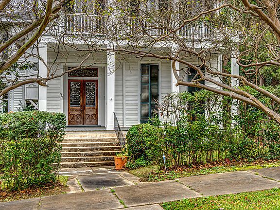This captivating home was originally built in 1890 as a wedding gift within the family. It has been well maintained and remained in the same family since it was built. The home was redone in 1972 and then remodeled in 2018. This 4 bed/4 bath home features beautiful heart of pine wood flooring throughout and amazing high ceilings. The charming front porch is a great area to place rocking chairs and/or a swing to sit and enjoy the outdoors. The front door opens into a spacious foyer area which features a built-in fireplace and a beautifully unique staircase, which was built in Pennsylvania and shipped in pieces by river barge and then pieced together in the home. The sitting room at the front of the house features large windows to allow for natural light. There is a fireplace with a wooden mantle that contains exquisite detail. A pocket door exists to lead you from the sitting room into the formal dining room. The dining room is spacious with windows to bring in natural light and allows you to enjoy views right from your table. The kitchen is equipped with stainless steel appliances. It provides plenty of space for a breakfast table. There is a large walk-in pantry in the kitchen with built-in shelving for kitchen storage. There is an enormous living room at the back of the primary floor equipped with a fireplace. There is also a sizeable bathroom on the primary floor with a soaking tub. A beautifully intricate mirror adorns the wall above the vanity. A second staircase exists at the back of the house which also leads to the second floor where the bedrooms are located. Each bedroom has ample space for comfort and large windows for lighting. One of the bedrooms has an adjoining sitting room which can be used for a reading area, office space, or craft space. The back of the home has a spacious deck which can be used for grilling and entertainment. The deck overlooks the beautifully landscaped yard giving you beautiful views to enjoy as you sit outside. This house is priced to sell so don't wait to get your own piece of history. For more information or to schedule a private showing, call today!