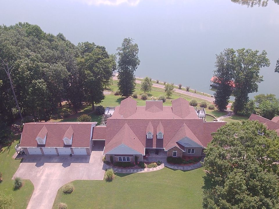 UNBELIEVABLE LAKE FRONT HOME w/over 1300 ft of SHORELINE & YEAR AROUND WATER + OUTSTANDING VIEWS! Look at the sq feet/ACREAGE/& WATERFRONT for the $$$. 8000 sq ft updated home- DOUBLE MASTERS w.EN SUITE BATHS UP & DOUBLE GUEST FULL SUITES DOWN / 67 ft SUN ROOMS up & down overlook lake//trey & vaulted ceilings, fossilized granite counters, plus attached 2/2 -3000 sq ft Guest Cottage, lakeside cabin, attached 4 car garage, & boat dock! A MUST SEE VIRTUAL TOUR, UPDATING & VIEWS!! DOUBLE BOAT DOCK