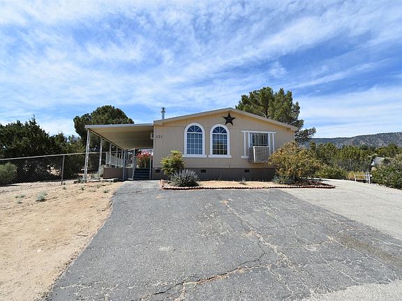 Super great views out the front of the house of the entire victor valley! Looking out of the backside of the house you see wonderful views of the mountains and foothills. Fresh interior paint, Built in shelves in the closets, upgraded title entryways, stay warm with gas central heating plus a free standing fireplace in the far bedroom, ceiling fans in each bedroom and living room. Sporting a bookshelf in one of the bedrooms. Stay cool with two window AC units on each side of the house and an evaporative cooler. Large lot with many trees and bushes. Located high up Mountain Rd in Pinon Hills with stunning 360 views!