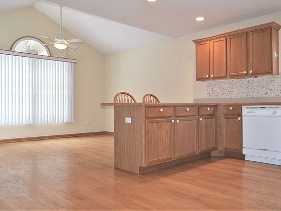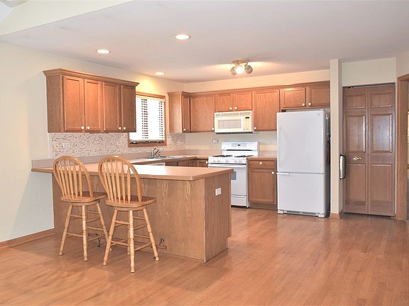 Desirable Hampshire Prairie! Easy living in this over 1650 sq ft Ranch duplex, plus a full area basement and 2 car garage! Spacious design features an inviting foyer leading to a cathedral great room. Bright and spacious kitchen features a breakfast bar, pantry and a separate dining area with cathedral ceiling and access to the large deck. Master suite boasts a cathedral ceiling, bay window, private bathroom with garden tub, separate shower, double basin vanity and a large walk-in closet. The guest bedroom can serve as an office or den with easy access to the full guest bathroom. Convenient main floor laundry room with full size washer and dryer. The open stairwell leads to a full area basement - great for a recreation room, storage and hobbies and also is equipped with a half bathroom (not pictured) and utility sink. (There is a staircase chair lift available to be installed upon request.) Freshly painted throughout. Covered front porch. Lawn care and snow removal included. Photos prior to former tenant.