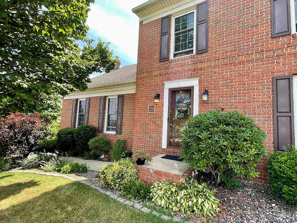 Welcome to this 4 Bedroom, 2.5 Bath stately brick-front home with mature, lush landscaping in Daniel Boone Area School District. You will love the bright, cheery feel from the moment you enter the foyer which has an oversized coat closet. The main floor features lots of living space including a formal living room and a huge sunken family room with higher ceilings and a wood stove with brick surround. The eat-in-kitchen has hardwood floors, newer stainless appliances, lots of cabinetry and newer casement windows above the sink which allow full top-to-bottom ventilation to let the outside in. The adjacent dining room also has hardwood floors, French doors off the formal living room and sliding doors which lead to the beautiful rear yard with a deck, newer patio (installed 2020) and partially fenced yard--perfect for entertaining. The main floor powder room has been nicely updated and houses the laundry closet. The second level has 4 nice sized bedrooms including the primary bedroom suite with an updated full bath. The second-floor hallway full bath has also been recently updated. Other features include a 2-car attached rear-entry garage, a huge basement for lots of storage, new floor-to-ceiling triple pane windows throughout (installed 2017), entire roof replacement (installed 2010), Lennox energy-efficient electric heat pump & central air (installed 2009) and hot water heater (installed 2014). Location is key--located very close to major Routes 724, 422, 176 & 10 as well as gas stations/convenience stores, grocery stores, major shopping & restaurants.