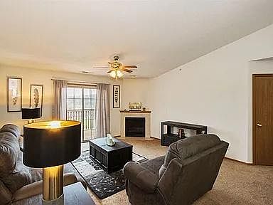 Great Condo located on top floor with vaulted ceilings! Unit has 2 bedrooms with large bathroom. Sliding door to balcony facing the back side of the building. Kitchen includes island for sitting. Newer carpet (no pets on this carpet). Located minutes away from interstate and local shops/dinners and mall. Walking distance to park, walking paths and pet park. Renter is responsible for water, gas and electric. Last month's rent is due at signing and $1,150 for security deposit. NO smoking allowed. Small pets (up to 20lbs) are permitted. Detached garage parking is included. Lease contract is for 1 year and option to renew lease after 6 months of contract.