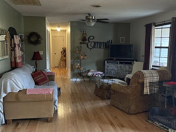Adorable ranch style home located just 5 miles outside Glasgow city limits! This home features hardwood flooring throughout and a beautiful wood fireplace with an open concept floor plan. There is a large detached garage and a deck to suit your entertainment needs. The roof is on two years old and HVAC system was replaced six years ago. This home sits on almost 2 acres in a peaceful neighborhood. Must see to appreciate all this home has to offer!