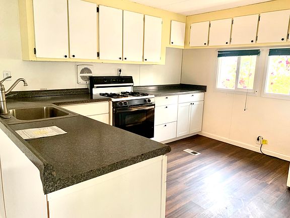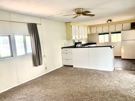 This cozy 2 bedroom/1 bathroom home in the Mountain Shadows park has brand new carpet and new exterior paint! The lower kitchen cabinets, countertops and dishwasher were all replaced 4 years ago and the refrigerator was replaced in 2020. The park has a pool, onsite laundry (the home features laundry hook ups as well), clubhouse and onsite manager!