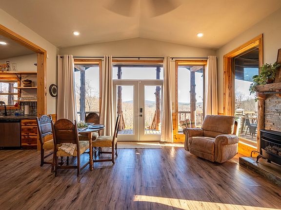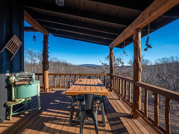 Welcome to Hawks Haven, a beautifully appointed cabin offering breathtaking mountain views and exceptional privacy. This 2-bedroom, 2-bath home features a full kitchen and an open-concept living area with a cozy fireplace and expansive views of the surrounding Ozark Mountains. Step out onto the back deck to enjoy peaceful mountain scenery, frequent wildlife sightings, and a unique hot tub perfectly positioned for relaxing on cool evenings. Built in 2018 with several updates since, this property has been successfully used as a nightly rental with strong performance, but it would also make an ideal personal vacation retreat or full-time residence. Enjoy the privacy of a secluded setting while being just a few miles from downtown Mountain View, Blanchard Springs Caverns, and the renowned White River. This is a rare opportunity to own a mountain cabin that truly showcases the beauty of the Ozarks—schedule your showing to experience it in person. All furnishings can stay with acceptable offer.