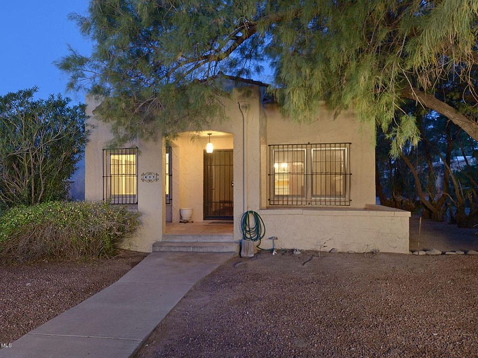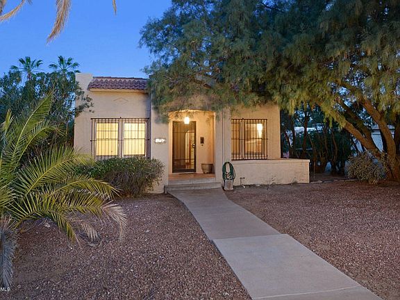 Adorable Sam Hughes 1920's Spanish Mission home on a large lot just one block from the U of A. This home hasn't been on the market for more than 30 years. Lovingly cared for! This home has wonderful original white oak Hardwood floors w/mahogany doors & trim, coved ceilings, original antique light fixtures, built in book case/desk in the living room w/FP. 2 bedroom 1 bathroom plus an office which could be used as 3rd bedroom. (see floor plan) Large laundry/utility room! separate garage for storage. Great opportunity to build on this deep key lot with room to double the size of the house and add a guest house & garage w/DDO!