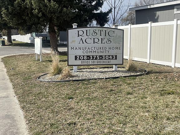 Beautiful double wide mobile home located in West Boise with newer laminate & carpet flooring, updated light fixtures, kitchen island and the SS appliances all enhance the open living concept of this split bedroom home. Nice outdoor space with room for your pets, garden space and a nice paved patio area. Rustic Acres offers RV parking and two parks, one is for the dogs. Backyard has been seeded and cared for by TruGreen Lawn Services. The sunscreen shade cover in the back yard opens up to be a canopy for summer shade. The Community Club House is available for events and the nearby walking paths make this a desirable place to call home. Great location with easy access for all that Boise has to offer.