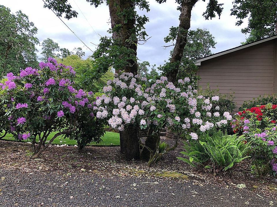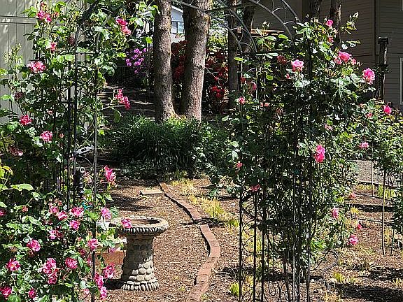The lot is next to beautiful woods on two sides, with a pond and seasonal creek running through the property behind the house. Lots of wildlife on a dead end street. Close to the Urban Growth Boundary. Quiet neighborhood with plenty of Oregon white oak trees. Two story with a daylight basement, deck off the master bedroom upstairs and a finished open floor plan in the basement. Separate 25'x25' shop, with concrete foundation, full insulation, tongue and groove fir interior walls, 220 wiring, forced air heat and water. Currently used as a woodworking shop. New roof and gutters, complete house painting in 2017. Foundation reconstruction in 2019. Interior repainting in 2020. More than 100 rose bushes and a panoply of shrubs and flowers in a large backyard garden, along with dry creek bed, ornamental trees, decks and pergolas.