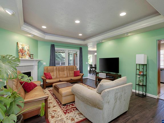 Charming one story home offers a spacious layout with a welcoming entry and open living room featuring a tray ceiling & beautiful fireplace. New luxury vinyl plank flooring, granite kitchen countertops, ss appliances, and plenty of storage. The primary suite incl a private bath with dual vanities, walk-in shower, & jacuzzi tub. Newer gas furnace and AC. Screened-in patio & dog run in your spacious backyard! EV charger in the garage