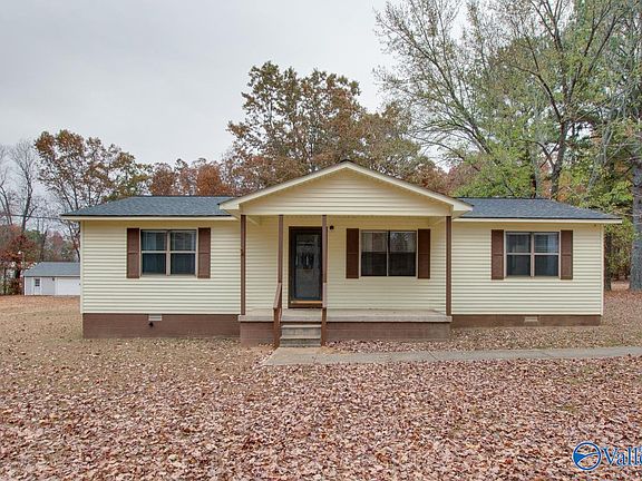 Charming 3 BR 2 full bath home on a .86 acre lot in Harvest. Covered front porch, Spacious Family Room, Eat in kitchen with a view and access to the deck. White kitchen cabinets with faux butcher block countertops, Refrigerator remains. Isolated Master BR with full bath. Two more bedrooms and a full hall bath. Laundry room with access to the back yard. Shed is insulated and has electricity. Home is being sold as is no known issues. Roof 2016, Septic inspected and cleaned 2018, HVAC 2009, water heater being replaced, Sliding doors in dining area 2001. New window treatments 2023. Repairs being made per inspection report.