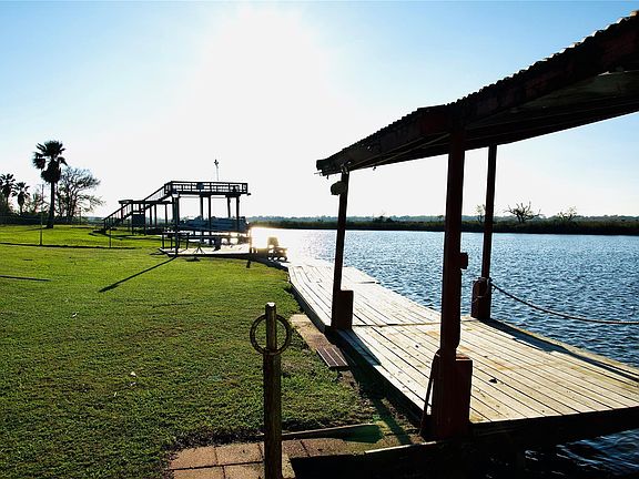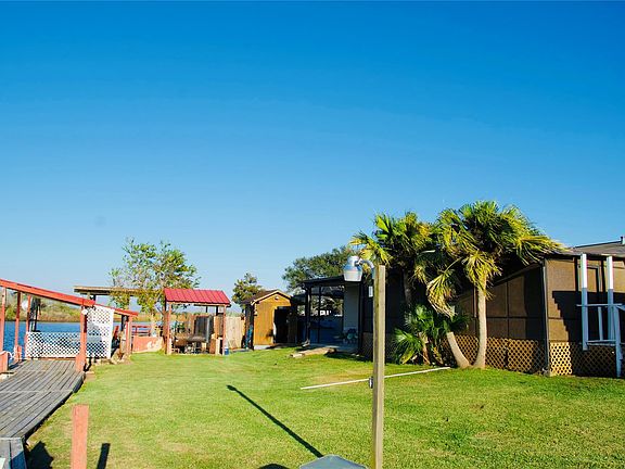 This waterfront property is located along a bayou, featuring a 3-bedroom home with scenic water views. The home offers an enclosed front porch and a rear porch overlooking the bayou and the evening sunsets. Additional improvements include a detached garage and a large 40x60 barn-style outbuilding providing endless possibilities. It also includes two private piers that extend to the bayou, and the third pier is equipped with a boat lift, offering direct water access. Open green space stretches from the residence to the water, enhancing the waterfront setting. This is a must-see property,