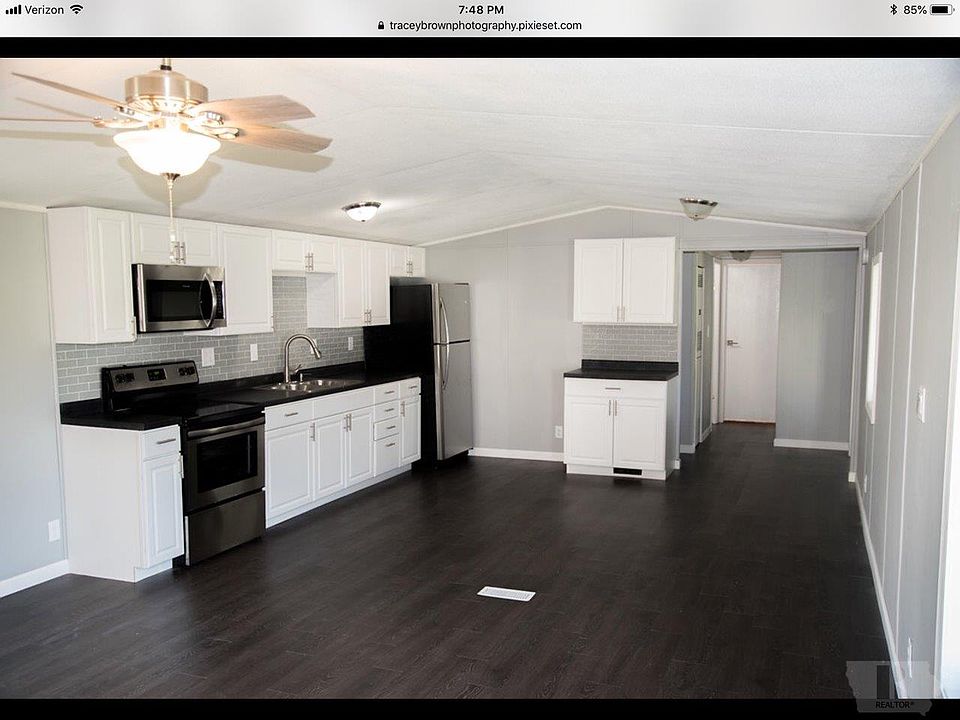 Attractive single wide with family room addition now available. This tastefully decorated home has had a complete remodel and has three bedrooms and two baths. All this, and situated on over 1.5 acres in town! Convenient south side location. Detached double garage.