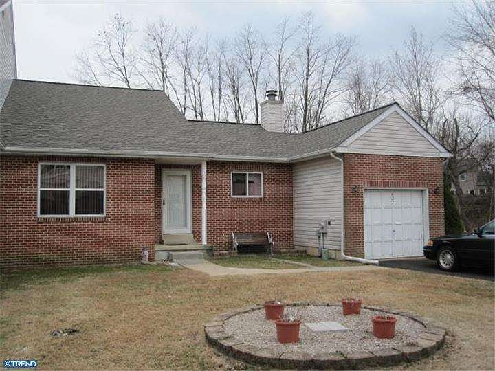This Bensalem Village End Unit Townhome is in move in condition. First floor has spacious living room, kitchen with oak cabinets, dining room with sliders to deck overlooking wooded area, Upper level has private master bedroom, ample closets and master bathroom. Lower level has 2 additional bedrooms, hall bath, and laundry room, The lower level family room has stone fireplace, bar and refrigerator. New Roof and New Heater. Plus a one car garage. Association fee includes basic cable, exterior maintenance, trash & snow removal, Tennis, Pool, Clubhouse, Playground and Basketball Court.