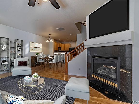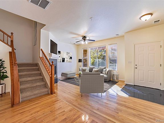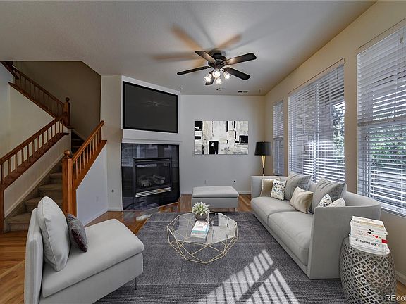 Welcome to this fantastic updated townhome! From the moment you enter the home, you will be greeted with a spacious open plan living space. Features include a Gas Fireplace, wood flooring on the main level, large Kitchen with all appliances included, 3 Bedrooms upstairs + a loft - great for an office area. New interior paint - May 2020. Newer windows upstairs - 2018. Washer + Dryer included! Sit back and relax on your private front porch overlooking the maintenance free landscaped green space outside your front door. This townhome is situated in a quiet interior location. Conveniently located minutes from Buckley Air Force Base, Town Center at Aurora, Parks and Schools. Property is vacant - some rooms have been virtually staged - easy to show!